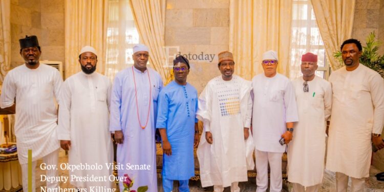 The governor of Edo State, Monday Okpebholo, visited the Maitama residence of the Deputy President of the Senate in Abuja on Monday to offer condolences for the killings of travelers in Uromi, Esan North East Local Government Area of Edo State.