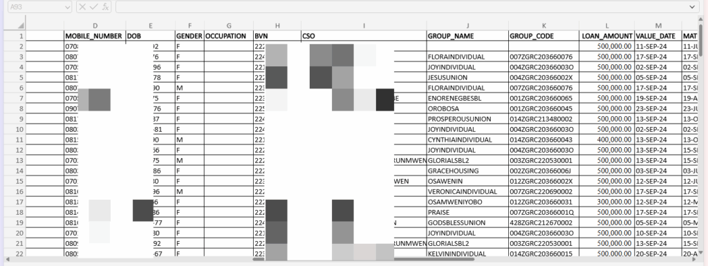 One file, titled LAPO First Disbursement List under DLI 4, contained names, addresses, disbursed amounts, BVNs, NINs, and account numbers. Another document, EDSG LAPO MSME Sept Report – First Batch, listed details of 147 people, including names, addresses, BVNs, and dates of birth.